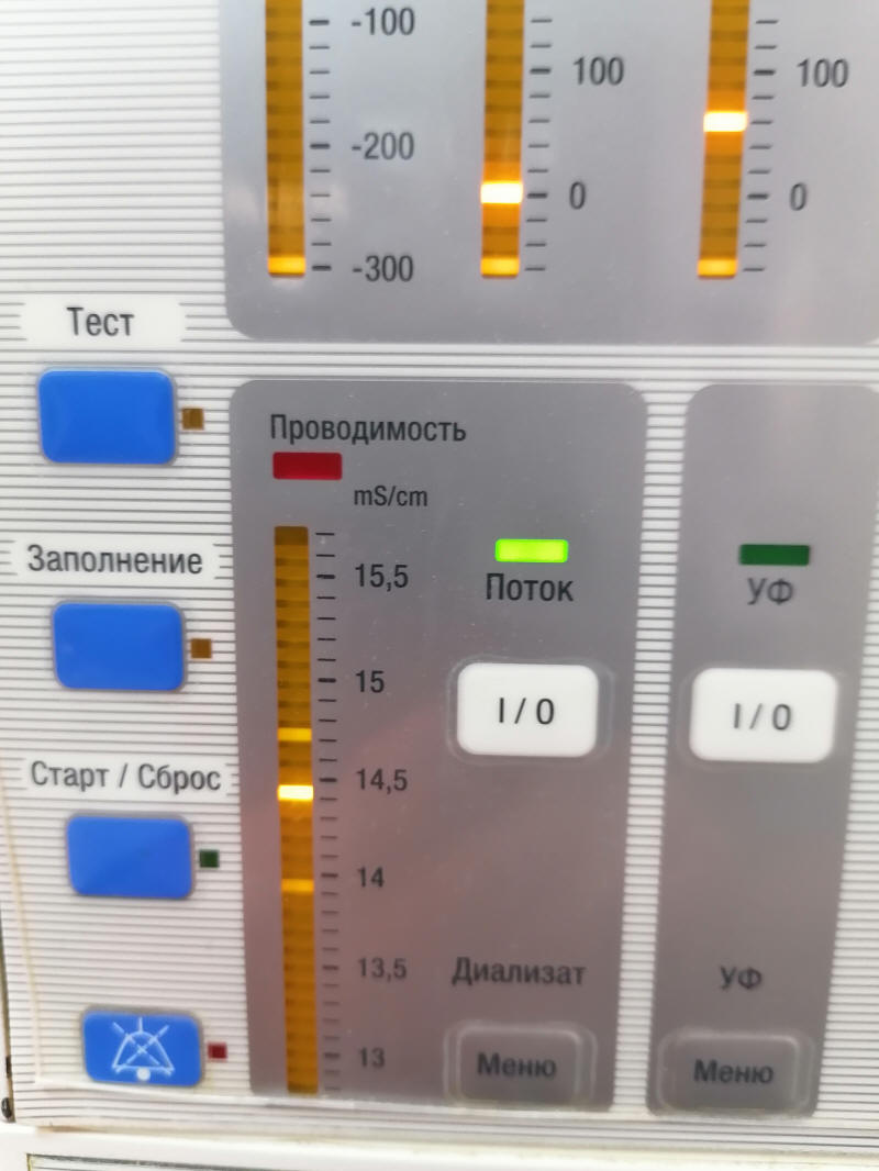 Проверяем, что диализатор начал нагреваться - значит пошла диализная жидкость.