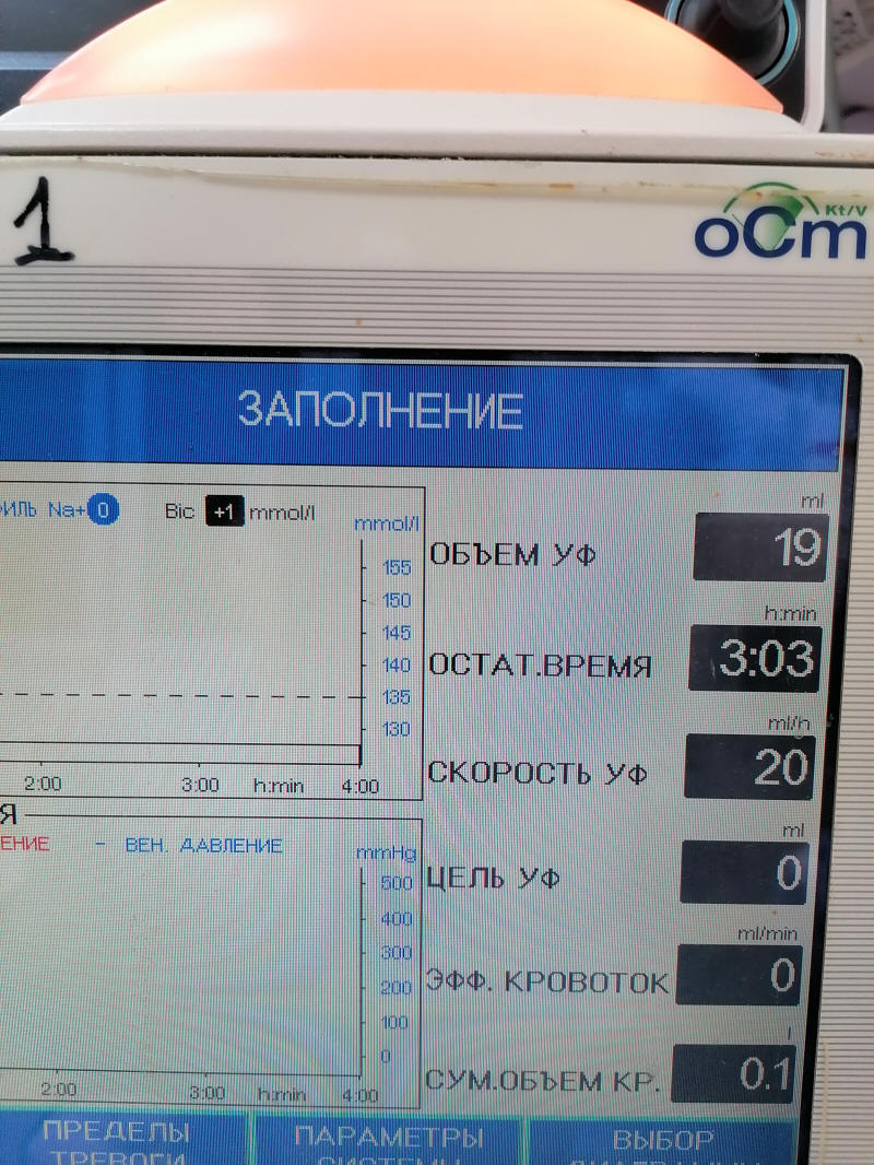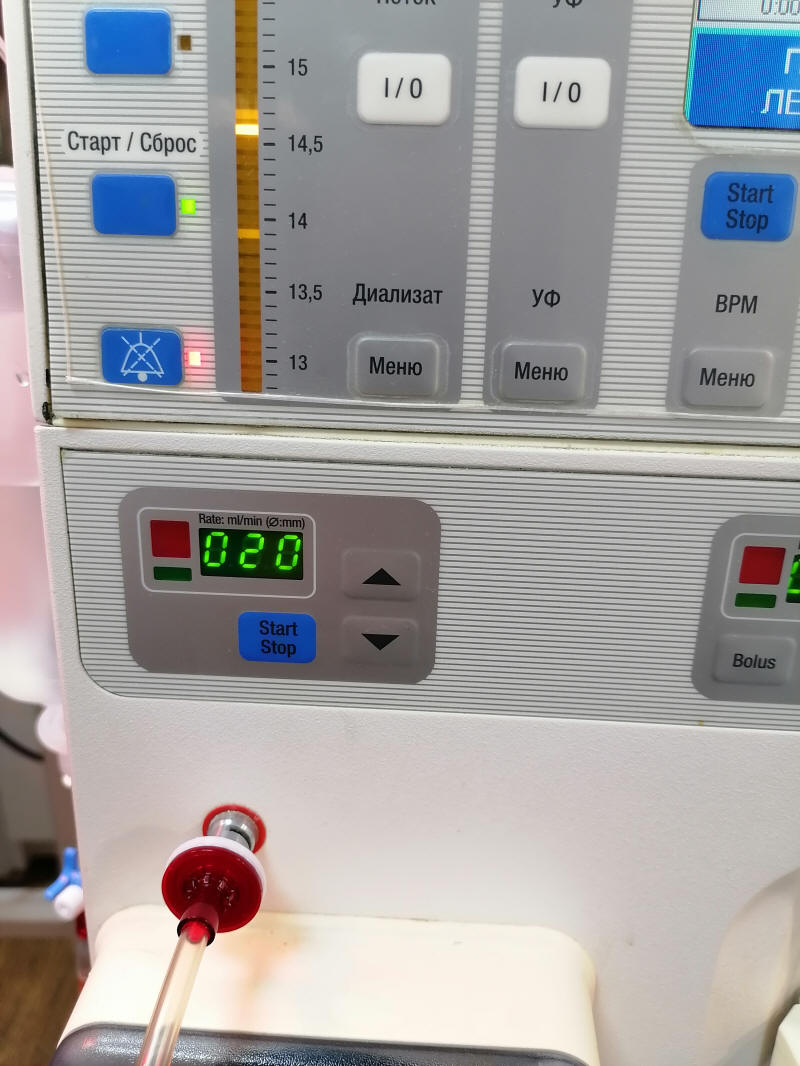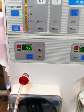 Индикатор насоса крови выключен. Настраиваем параметры насоса крови.