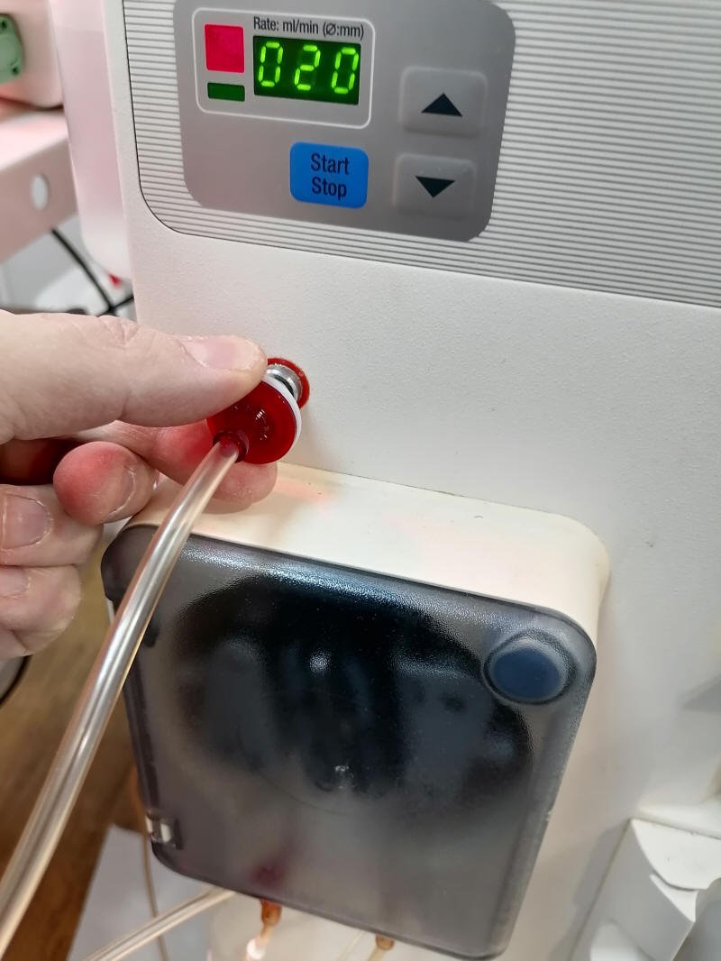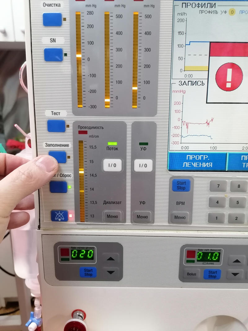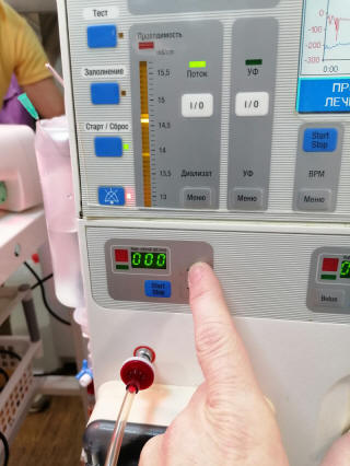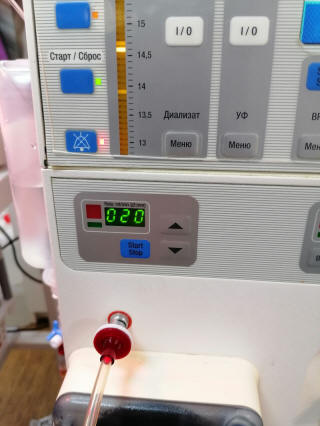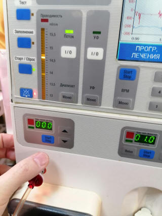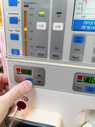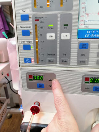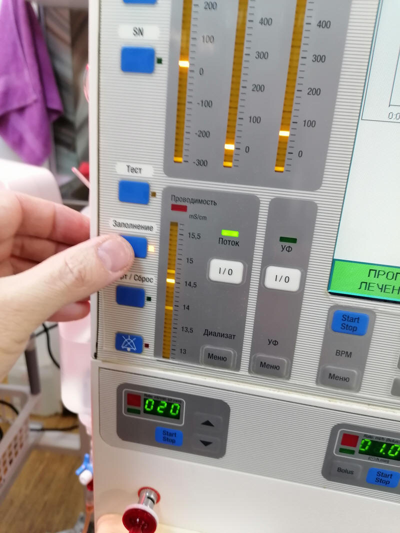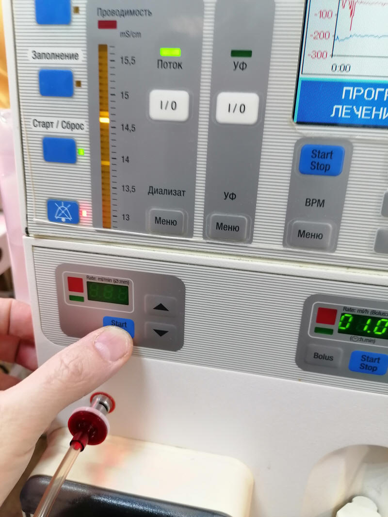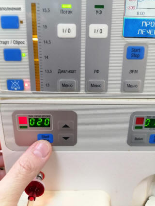 Нажимаем кнопку старт - стоп на панели насоса крови.