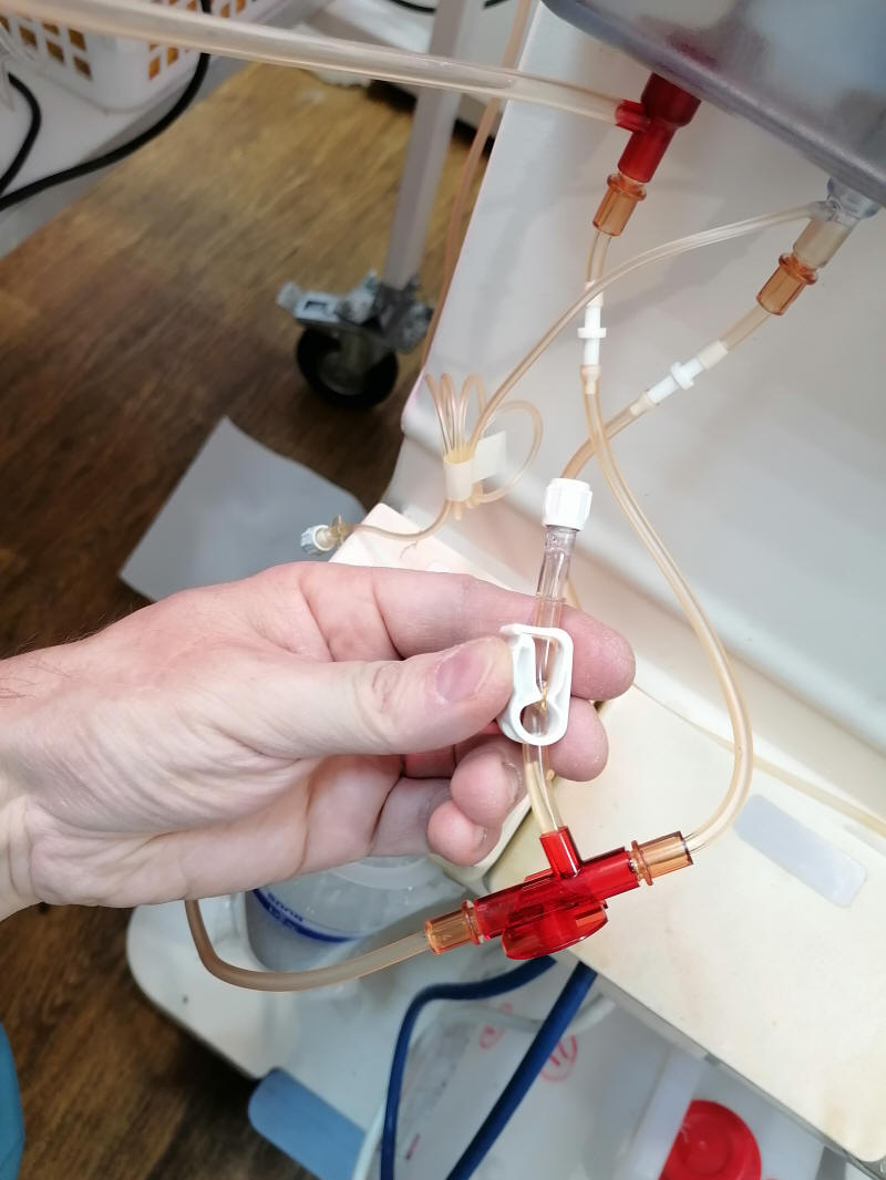 Далее заполняем линию гепарина и проверяем уровень жидкости в венозных ловушках.