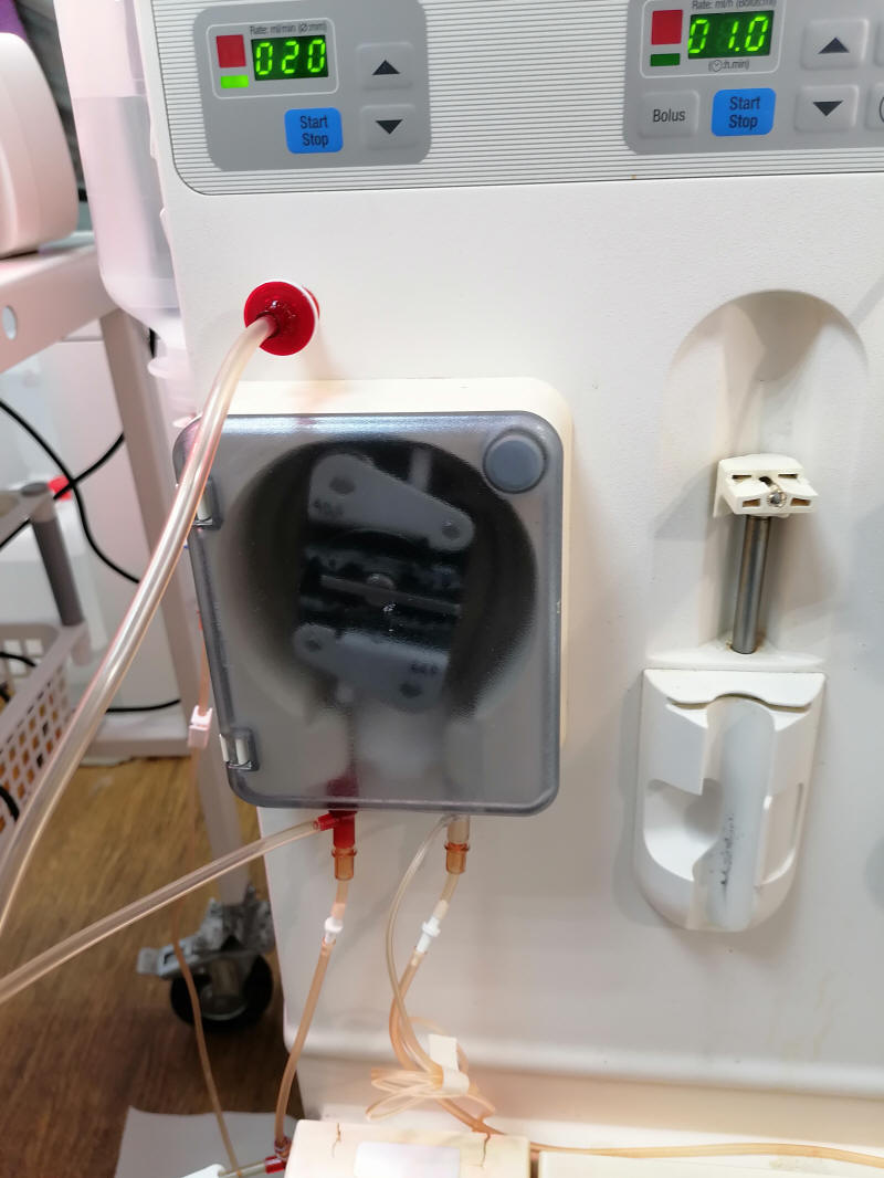 Нажимаем кнопку старт - стоп и начинает крутиться ротор - ролики насоса крови.