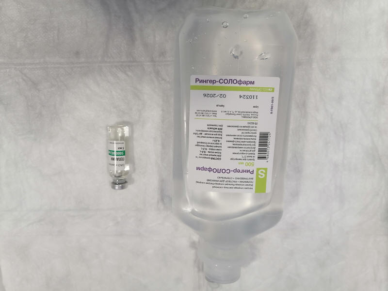 Добавили гепарин в физраствор.