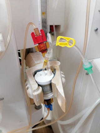Для животных весом более 10 кг можно проводить плазмаферез на аппарате Фрезениус 4008 с большим фильтром Гемос ПФС, система магистралей Paed/Baby-R - Паед/Беби-Р, а животным весом более 30 кг можно использовасть систему магистралей Paed-R - Паед-Р.